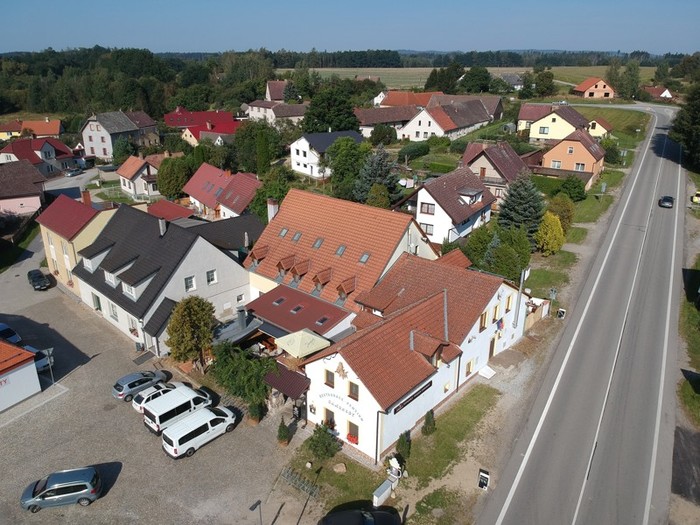 Letecký pohled, restaurace penzion Samorost, Jarošov nad Nežárkou