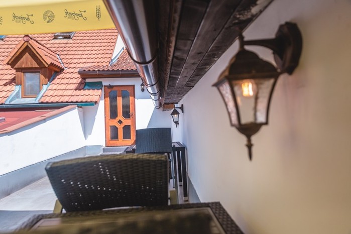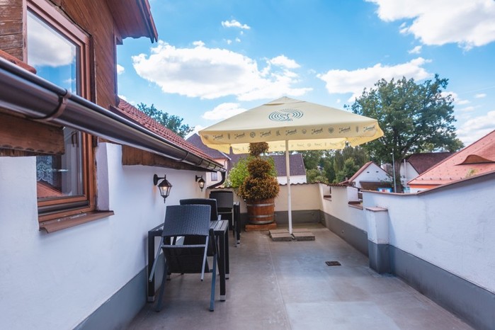 Horní nekrytá terasa pro ubytované hosty, penzion Samorost, Jarošov nad Nežárkou