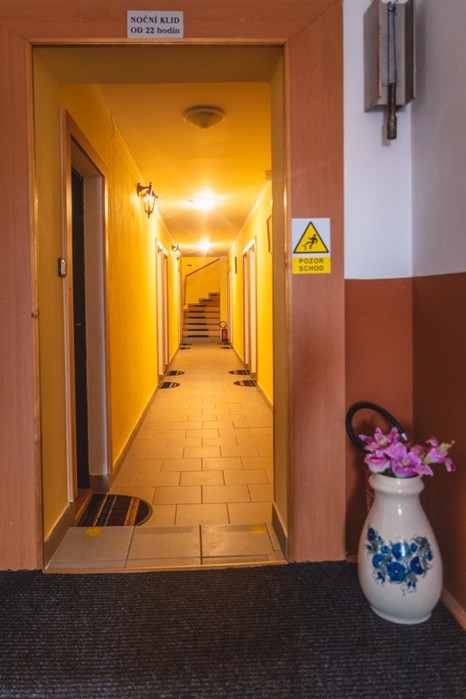 Chodba k pokojům v 1.patře, penzion Samorost, Jarošov nad Nežárkou