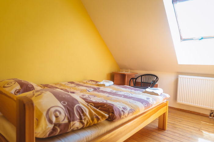 Dvoulůžkové pokoje Basic jsou umístěné ve druhém patře budovy penzionu, v podkroví, bez koberců a TV, vhodné pro krátkodobé pobyty nebo přespání. Lůžka jsou variabilní pro manželskou i samostatnou verzi, není možná přistýlka.